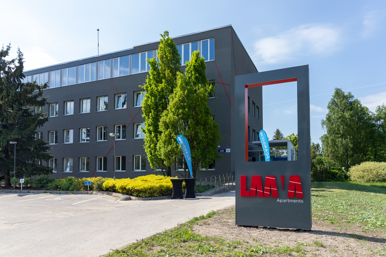 Laava Apartments, created in the middle of busy Mustamäe, are intended for rent for a practical client. There are many shops, a cinema, and a zoo within a short walk. For example, in 2020 Reval Cafe opened its doors opposite the building. The cosy rental studios have a smart layout, and the compact area has a place for resting, dining, studying, and sleeping.